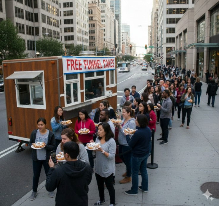 Free Funnel Cakes: We’ll serve up delicious funnel cakes to your visitors for free.