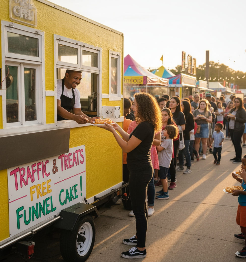 Add a delicious twist to your next event with our Fair Food Heaven Food Truck. From warm, crispy funnel cakes to fried Oreos and refreshing lemonade, we offer a fun and tasty experience for weddings, parties, corporate events, and more. Book today and treat your guests to something unforgettable!