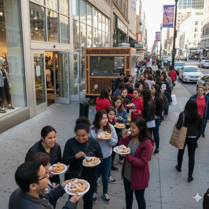 The Treats in Traffic Program is designed to bring excitement, new customers, and more visibility to your business. By partnering with us, you can offer delicious free funnel cakes to passersby, turning a regular day into an opportunity for increased foot traffic, sales, and brand awareness. Watch your business thrive as we deliver a fun, engaging experience that draws in large crowds eager to try our signature treats.